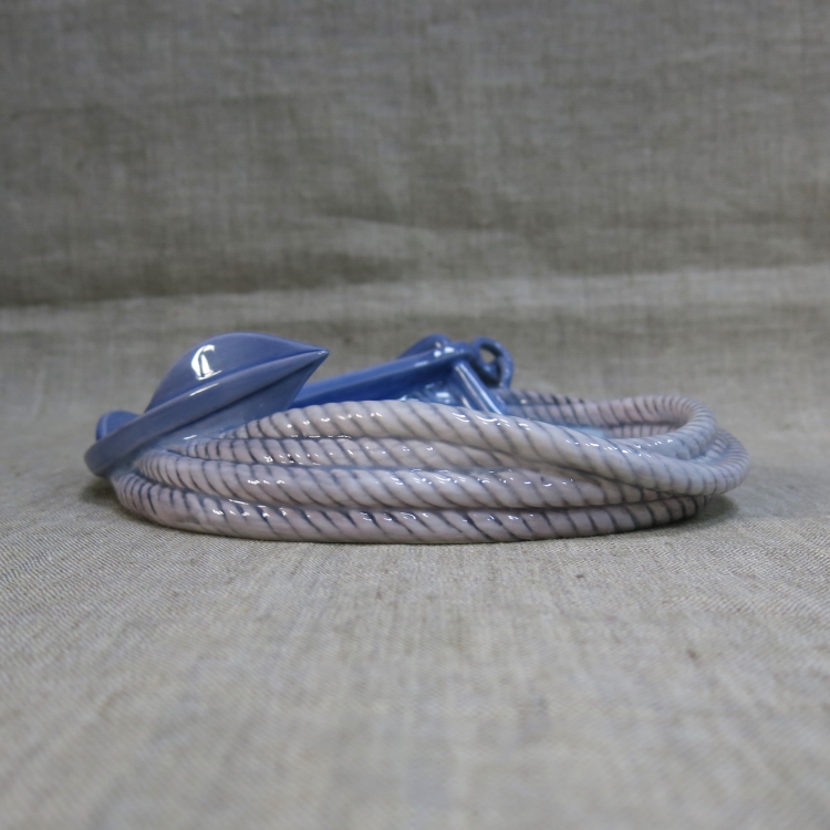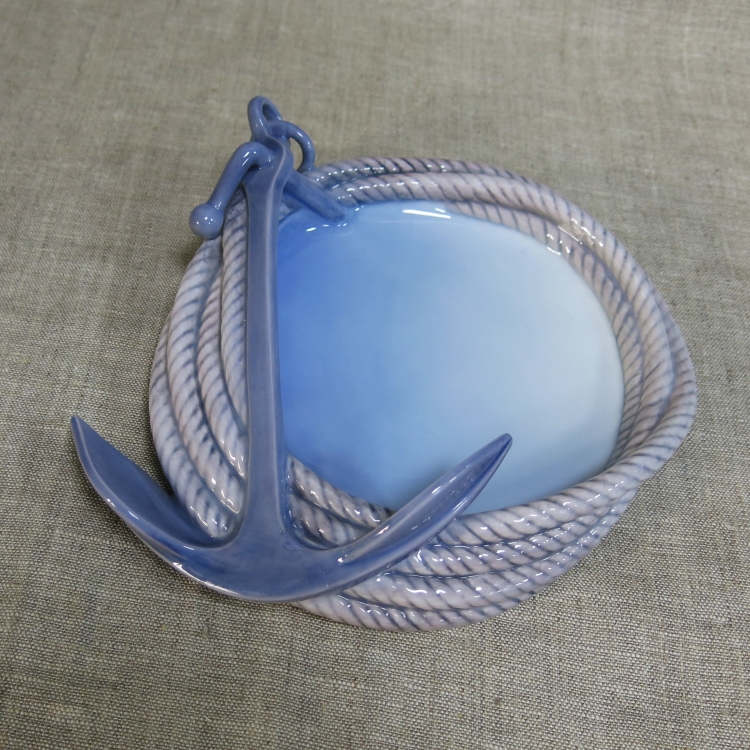 Декоративное блюдо с якорем на канате, изготовленное на датской фарфоровой мануфактуре Bing&Grondahl.