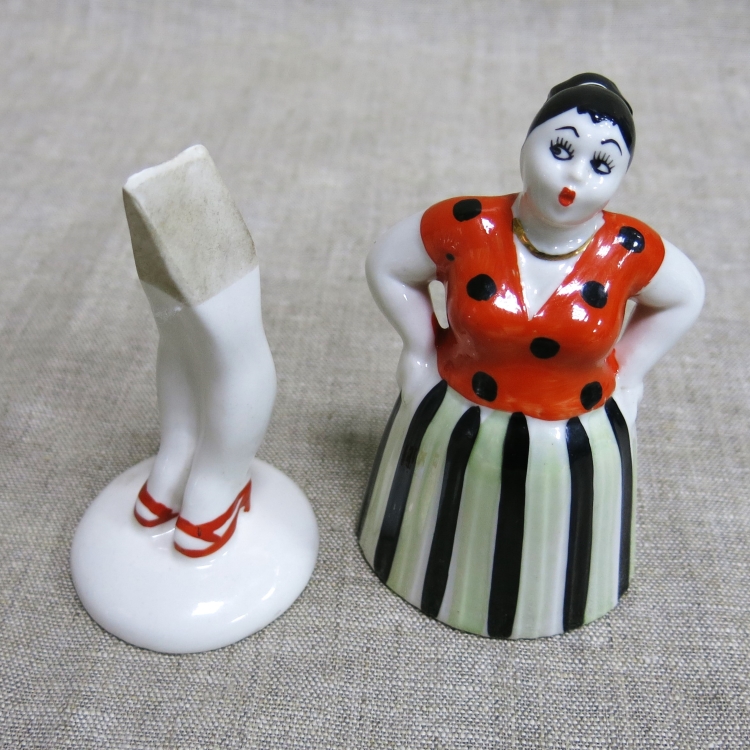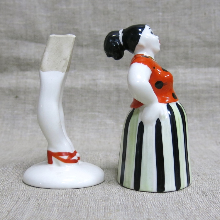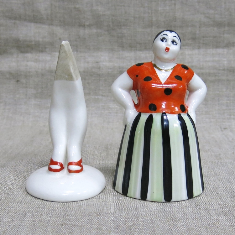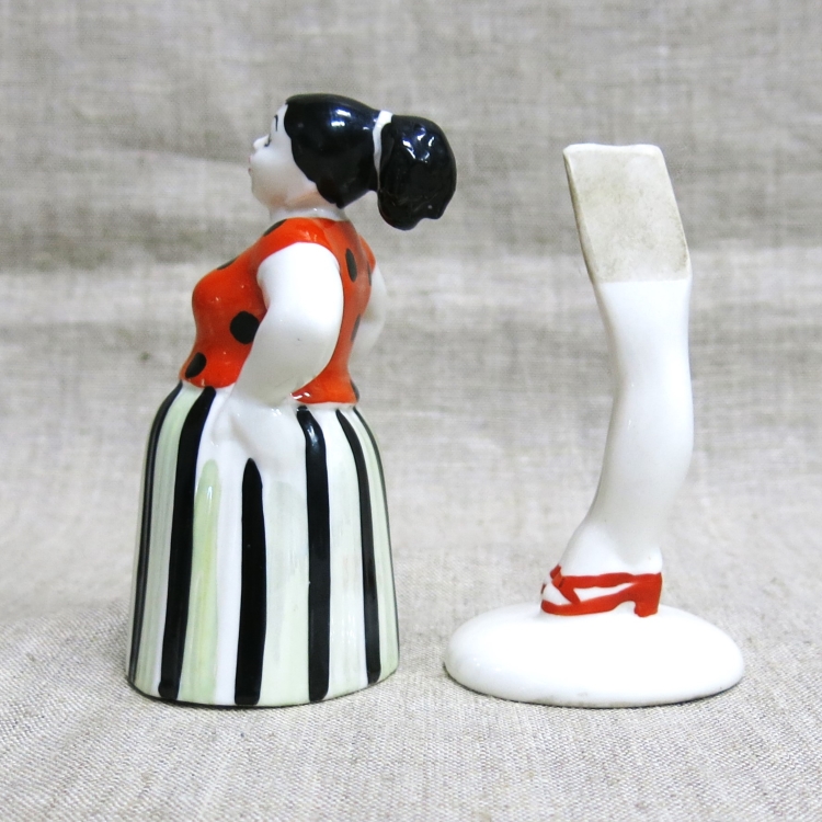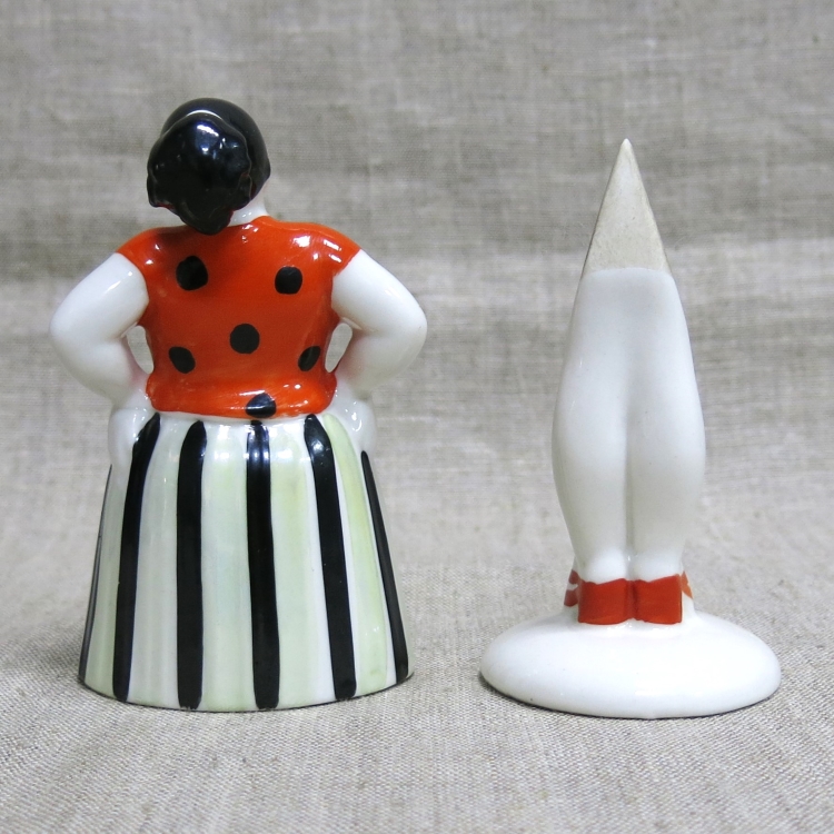 Фарфоровая статуэтка-качалка «Сплетница» («Склочница») в полосатой юбке и блузке в горошек из скульптурной серии «Разговор».