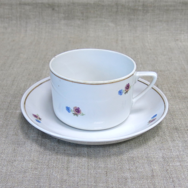 Чашка: высота - 6 см, диаметр - 9 см, блюдце: диаметр - 16,5 см