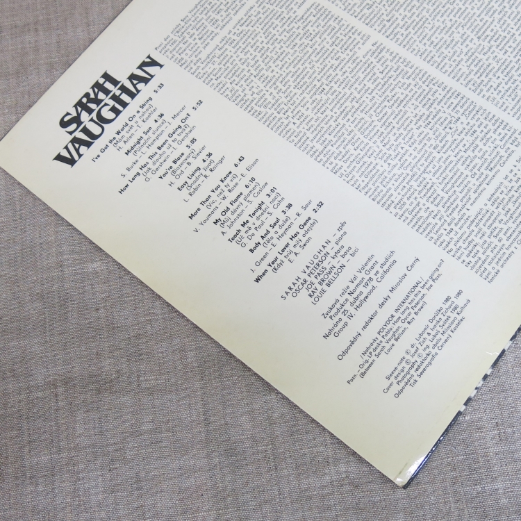 Сара Воэн (Sarah Vaughan; 1924-1990) - американская джазовая певица, одна из наиболее известных в XX веке. Премия «Грэмми» в номинации «Лучшая джазовая вокалистка» (1982).