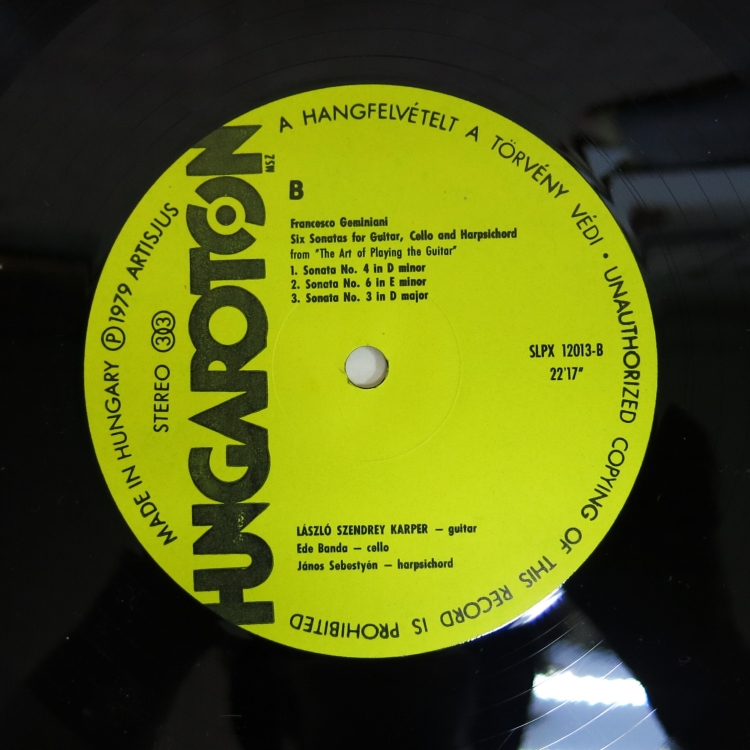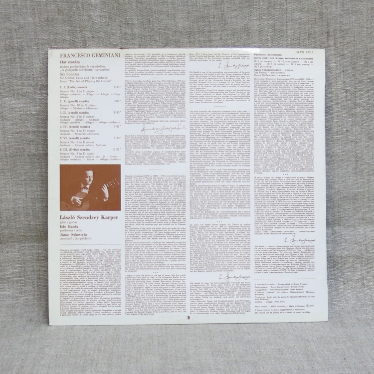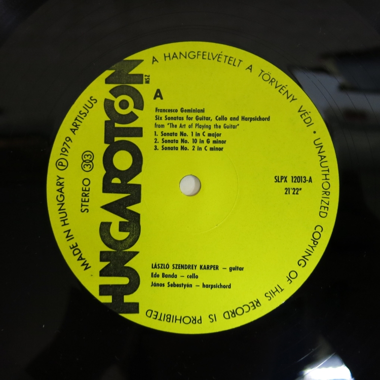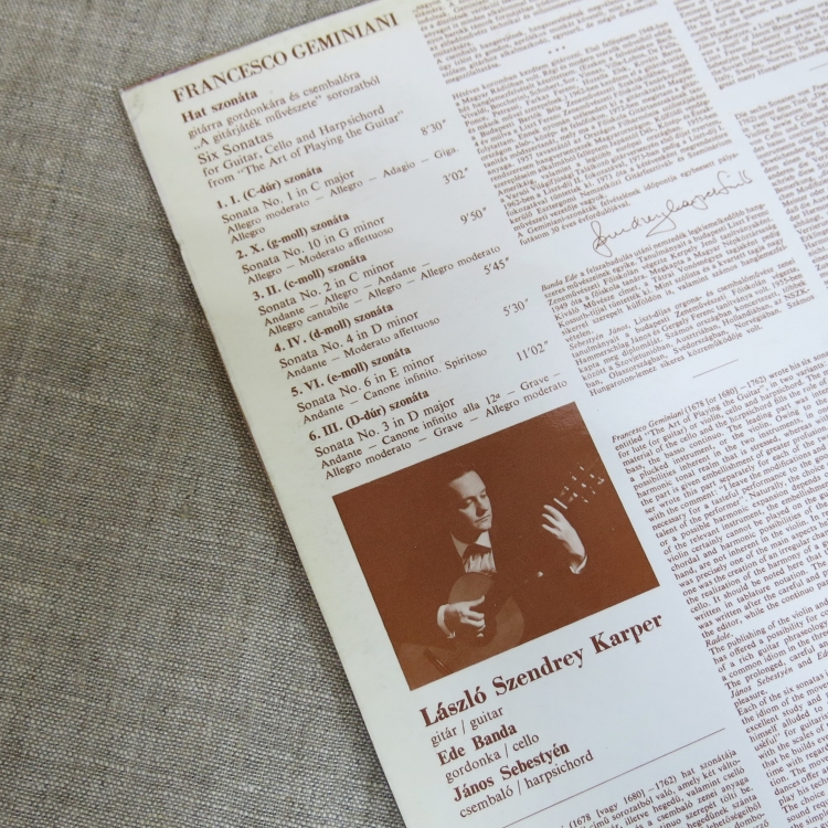 Исполнители: László Szendrey Karper (гитара), Ede Banda (виолончель), János Sebestyén (клавесин).