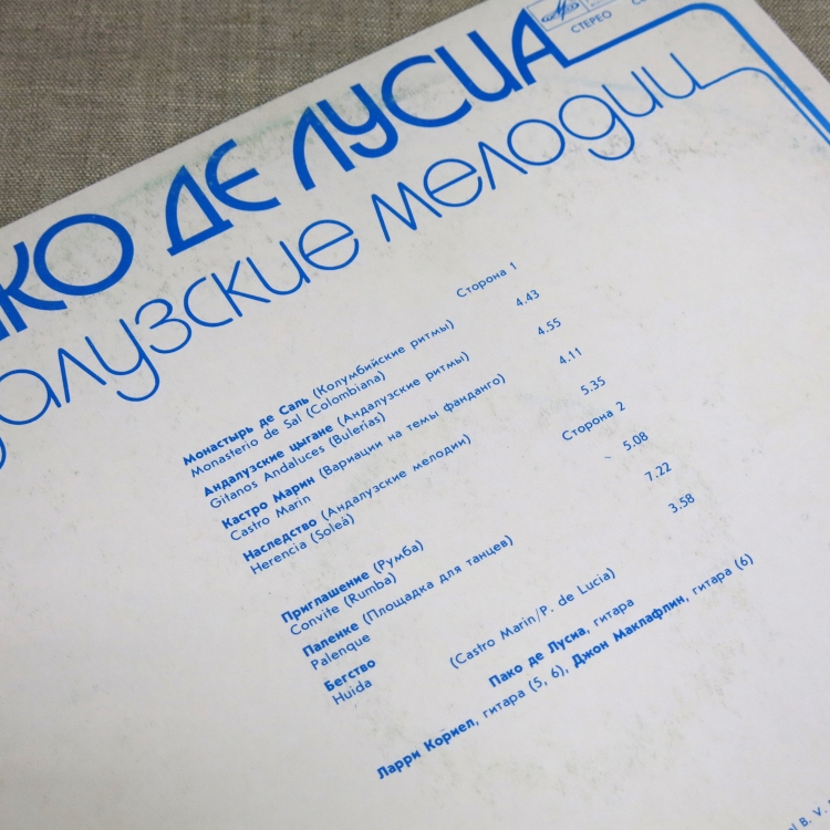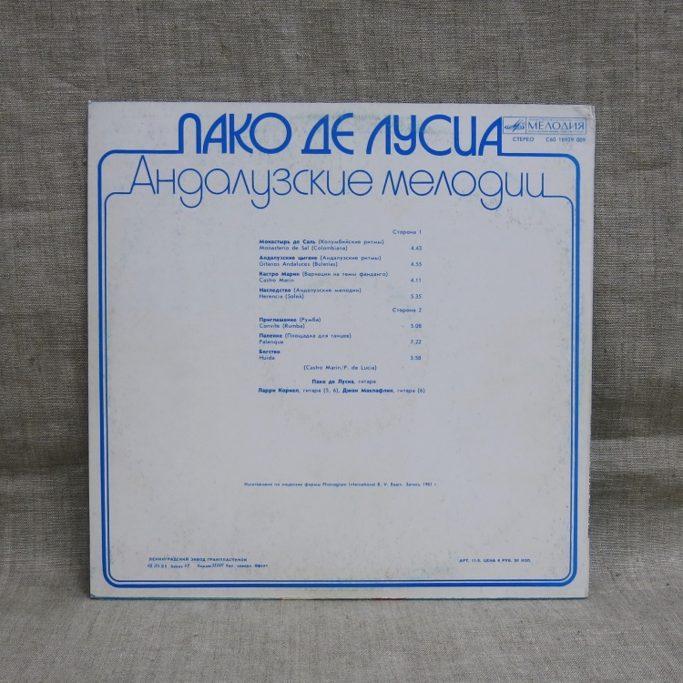 Пластинка виниловая PACO DE LUCIA/ПАКО ДЕ ЛУСИА - АНДАЛУЗСКИЕ МЕЛОДИИ