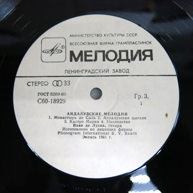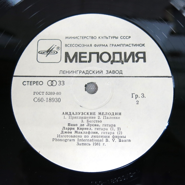 Запись 1981 г. Советское издание изготовлено по лицензии фирмы Phonogram International B. V. Baarn.