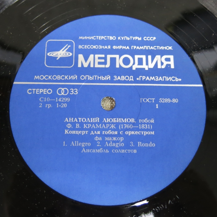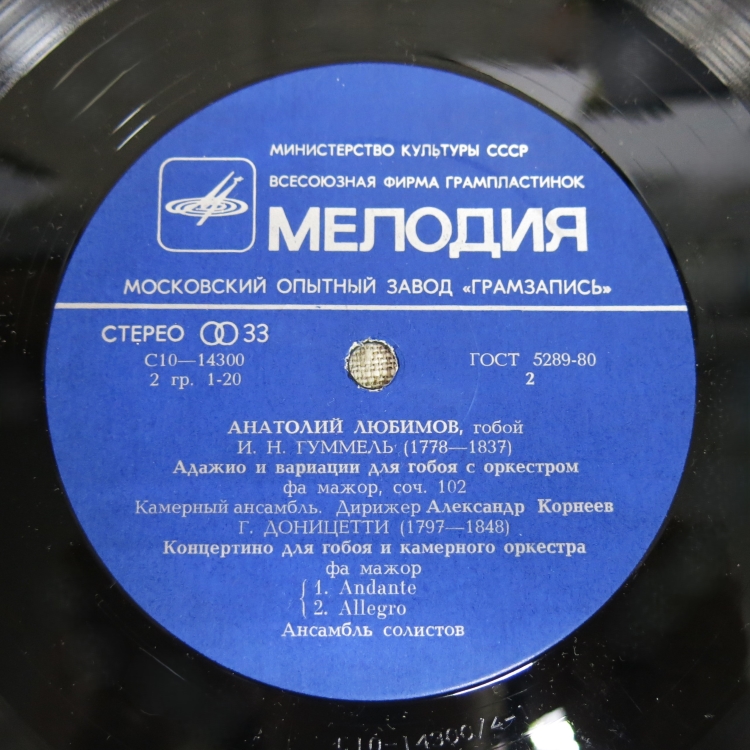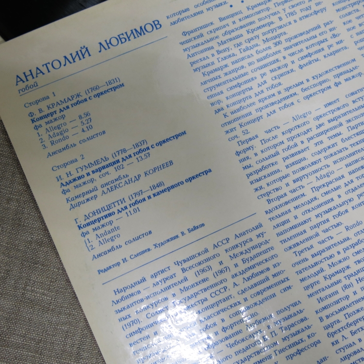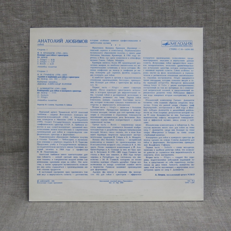 Пластинка виниловая F.V.KROMMER, G.DONIZETTI, J.N.HUMMEL, АНАТОЛИЙ ЛЮБИМОВ - CONCERTOS FOR OBOE AND ORCHECTRA / ADAGIO AND VARIATIONS FOR OBOE AND ORCHESTRA