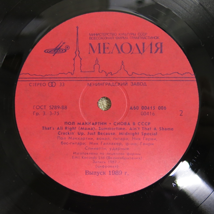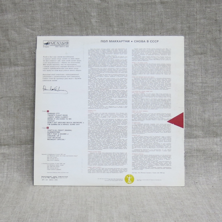 Пластинка виниловая PAUL MCCARTNEY - СНОВА В СССР
