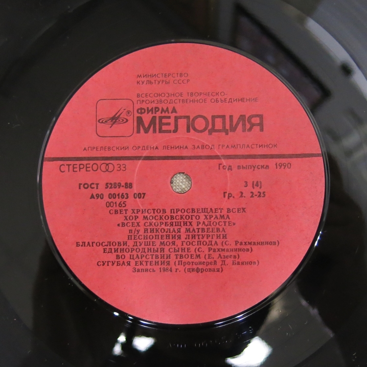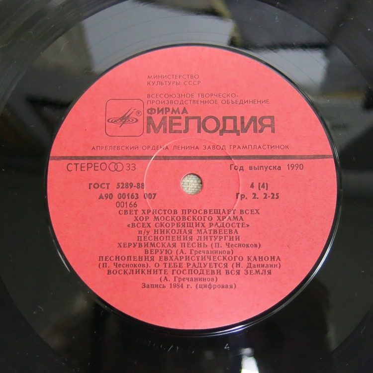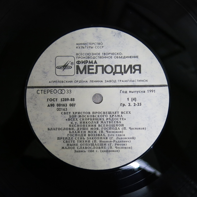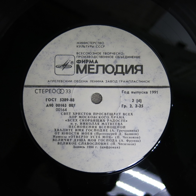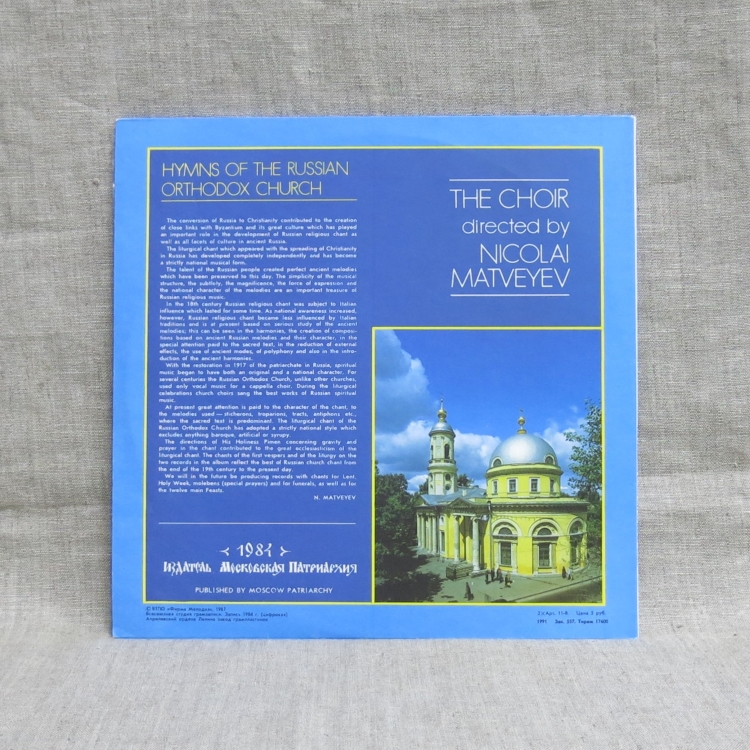 Серия: 1000-летие крещения Руси (988-1988). Песнопения Русской православной церкви «Всенощная - Литургия» исполняет Хор московского храма «Всех скорбящих радосте» под управлением Николая Матвеева. Запись 1984 года (цифровая).