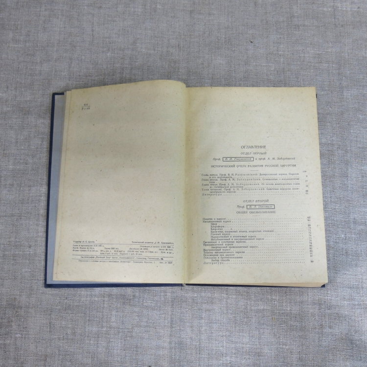 Руководство практической хирургии / сост. проф. В. Л. Боголюбов, проф. В. Р. Брайцев, проф. Н. Н. Бурденко, проф. А. В. Вишневский [и др.] под ред. С. С. Гирголава, А. В. Мартынова, С. П. Федорова. Том I. Общая часть. Хирургия головы / сост. проф. В. И. Разумовский, проф. А. М. Заблудовский, проф. В. Л. Покотило [и др.] - Ленинград ; Москва : Биомедгиз, 1936. Тираж 5200 экз. - 517 с. : ил.