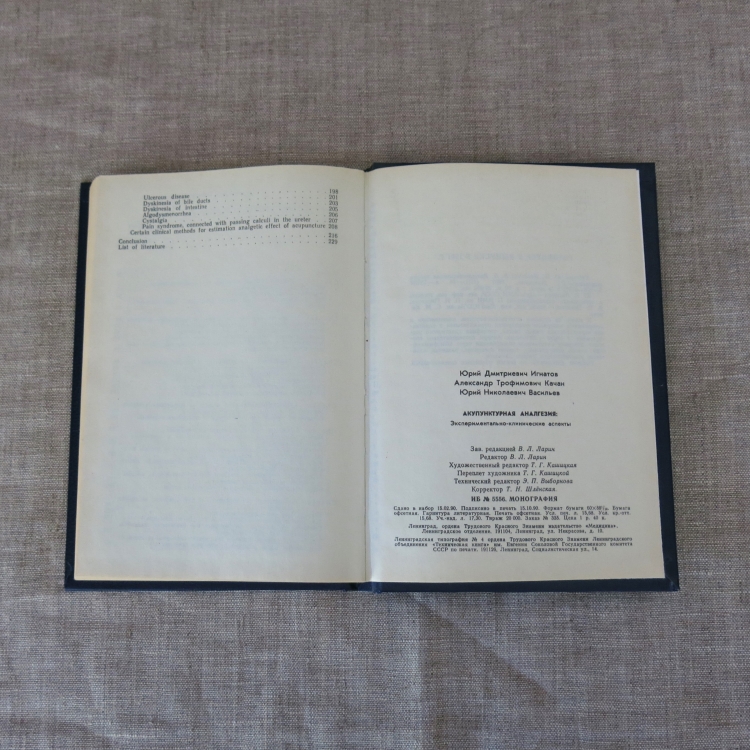 Акупунктурная аналгезия : экспериментально-клинические аспекты / Ю. Д. Игнатов, А. Т. Качан, Ю. Н. Васильев. - Ленинград : Медицина, 1990. - 251, [3] с. : ил. Тираж 20.000 экз.