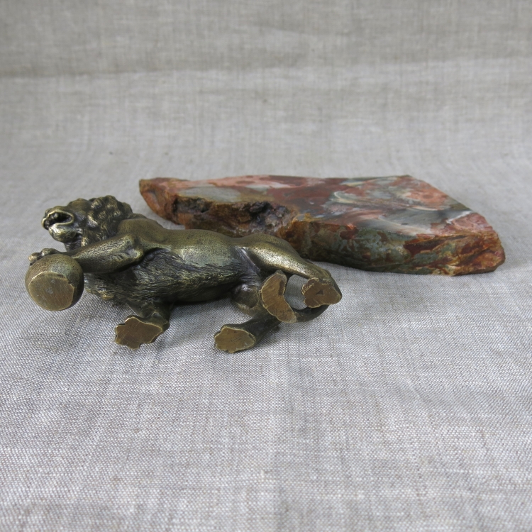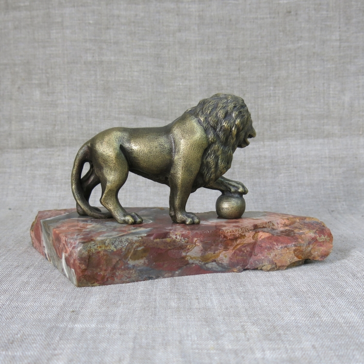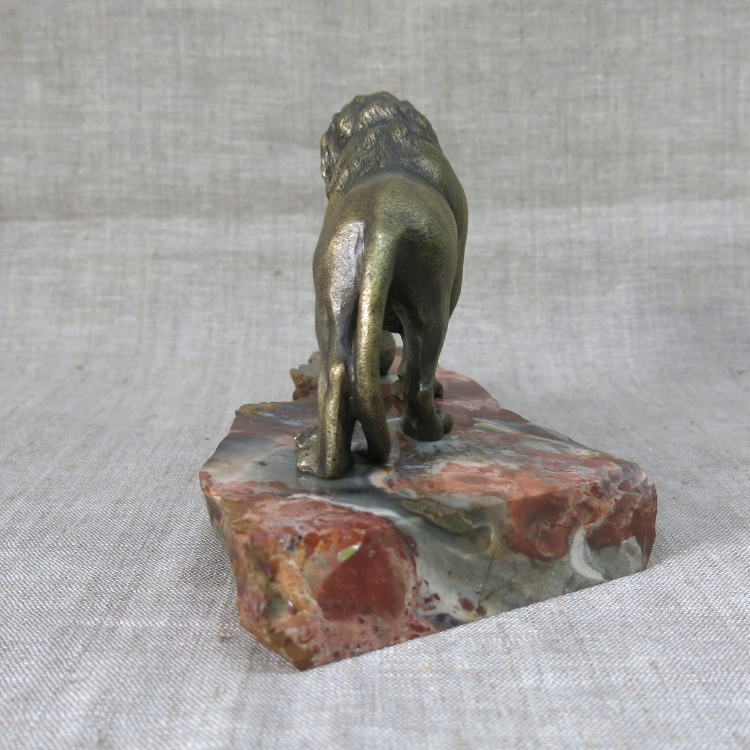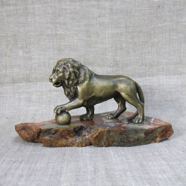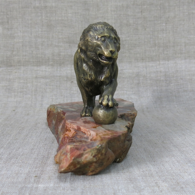 Бронзовая фигура льва на подставке из природной яшмы (не закреплена).