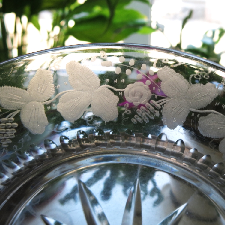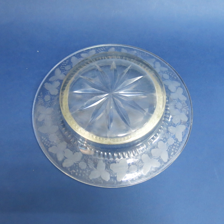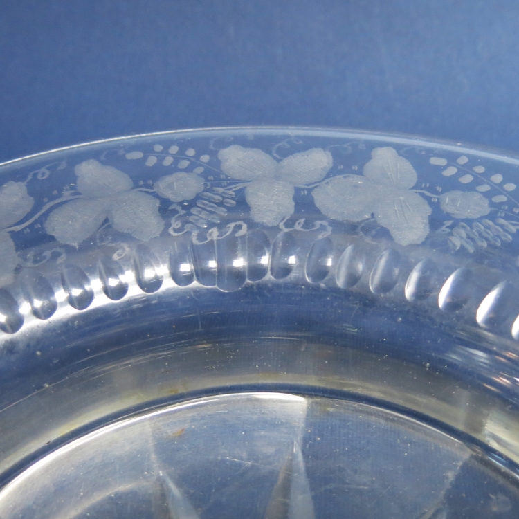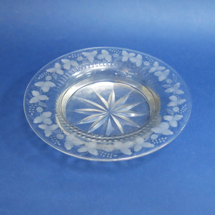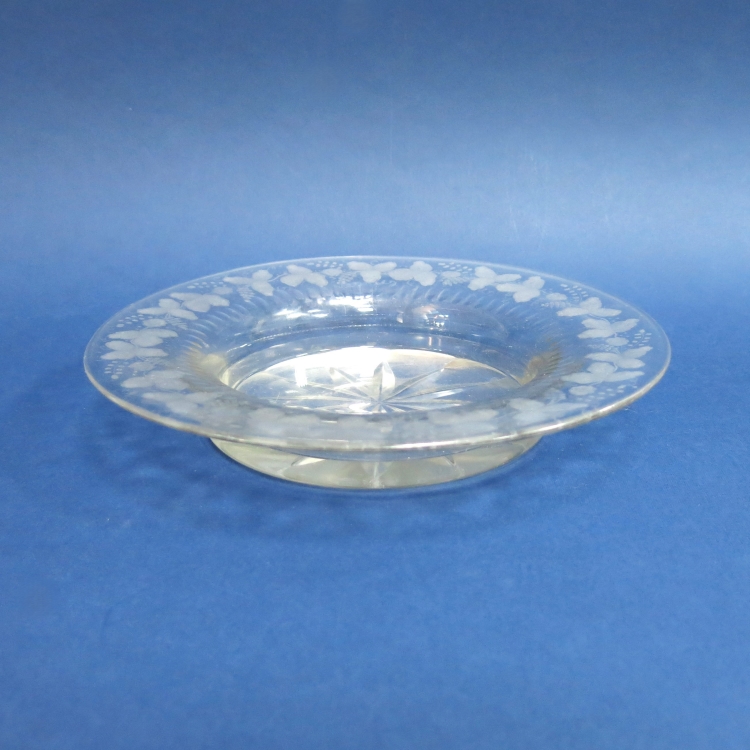 Блюдо для сервировки с алмазной гранью и гравировкой по широкому борту. Рисунок в виде растительного орнамента. Ручная работа.