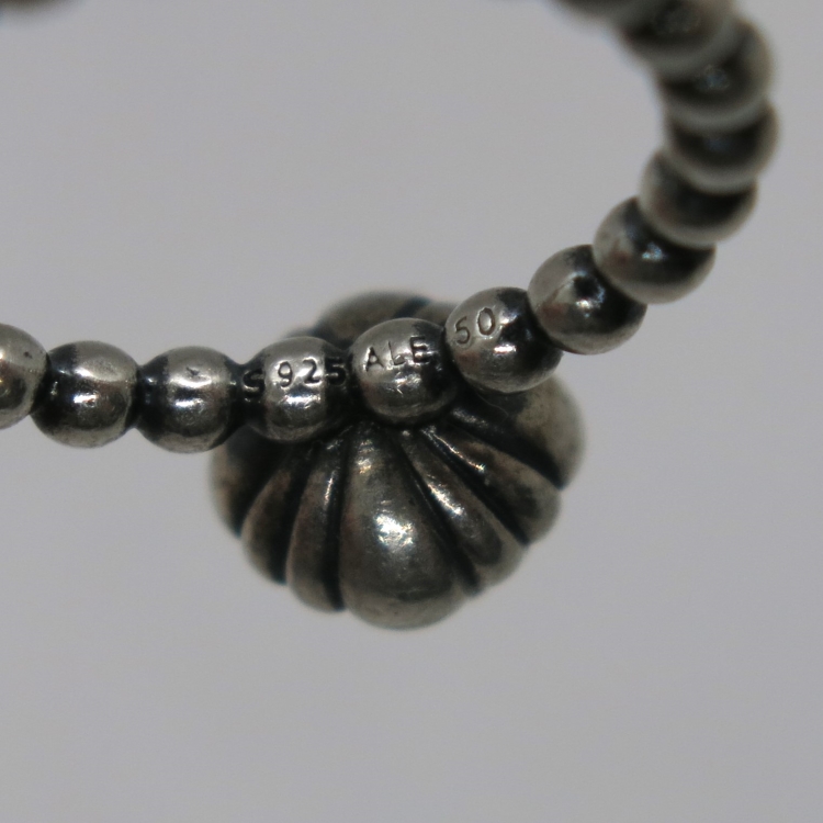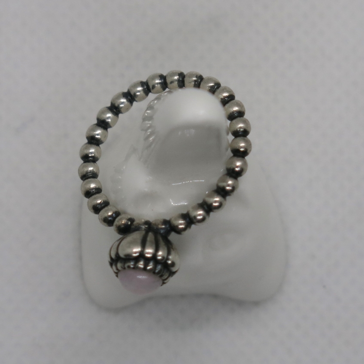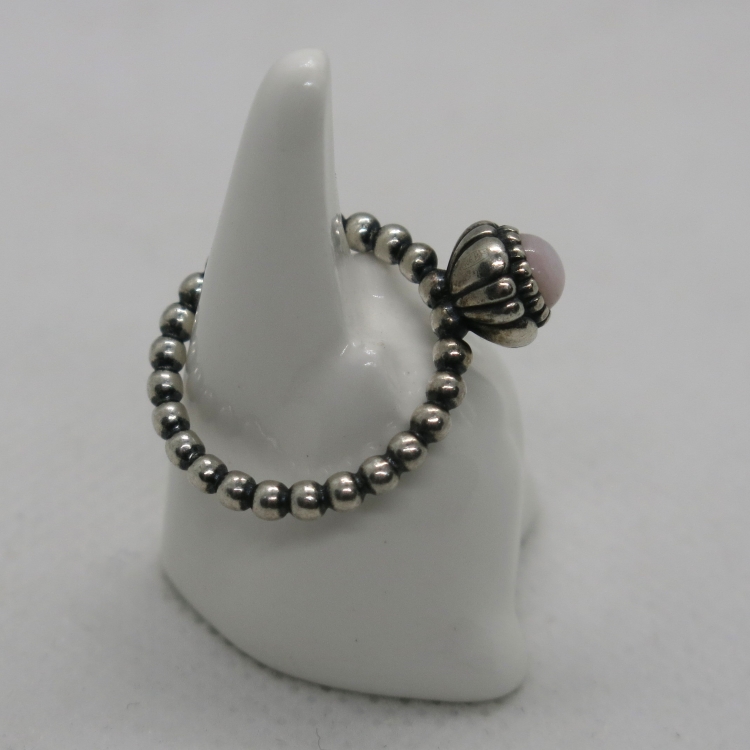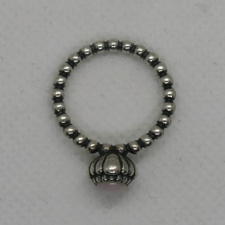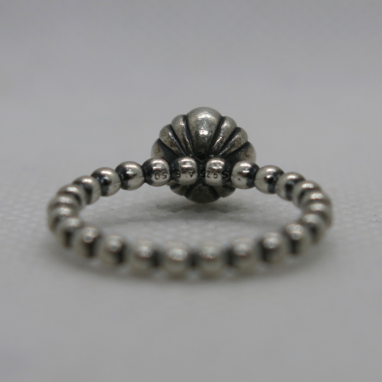 Винтажное кольцо PANDORA c искусственным жемчугом. Клеймо «S 925 ALE 50» (серебро 925 пробы; именник компании PANDORA; размер 50).
