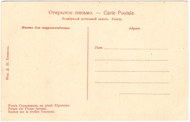 Открытое письмо УТЕС ГЕРАСИМОВ НА РЕКЕ ЮРЕЗАНИ. до 1917 г.