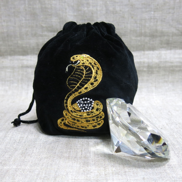 На бархатном мешке-футляре для кристалла - авторская вышивка, украшенная стразами.