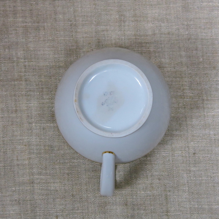 На дне молочника следы замытого клейма «ЛФЗ» (Ломоносовский фарфоровый завод) периода 1960-х гг.