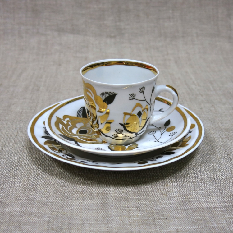 Фарфор, деколь, обводка золотом по краю