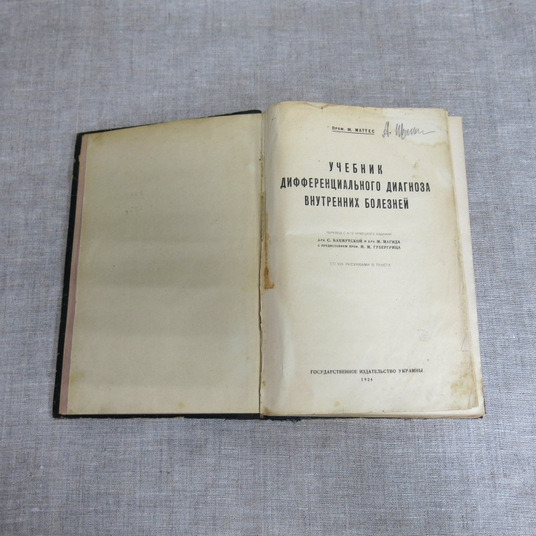 Учебник дифференциального диагноза внутренних болезней. Проф. М. Маттес. Перев. с 4-го немец.изд. д-ра С. Бахмутской и д-ра М. Магида с предисл. проф. М.М. Губергрица. - [Киев]: Государственное издательство Украины, 1924-1925.