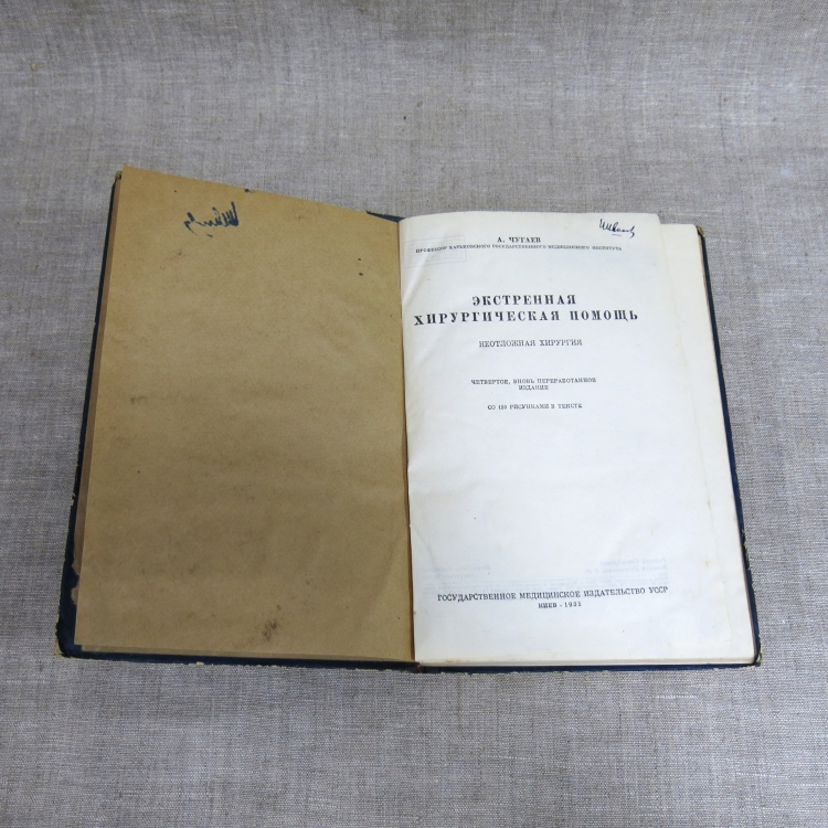 Чугаев, Анатолий Андреевич. Экстренная хирургическая помощь : Неотложная хирургия / А. Чугаев, профессор Харьковского государственного медицинского института. - 4-е изд., вновь перераб. - Киев : Гос. мед. изд-во УССР, 1935. Тираж 7500 экз. - 292 с. : ил.