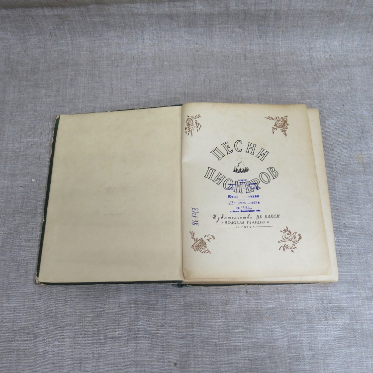 Песни пионеров / Сост. и муз. редактор В.Локтев, засл. деятель искусств РСФСР, худ. рук-ль ансамбля Моск. гор. дома пионеров. - Москва : Мол. гвардия, 1955. Тираж 100000 экз.- 374 с.