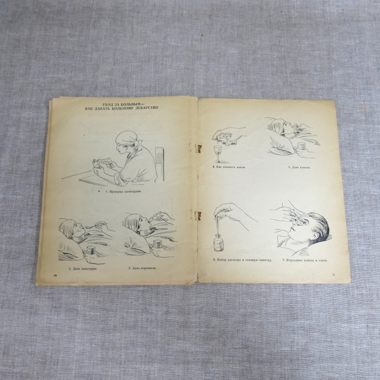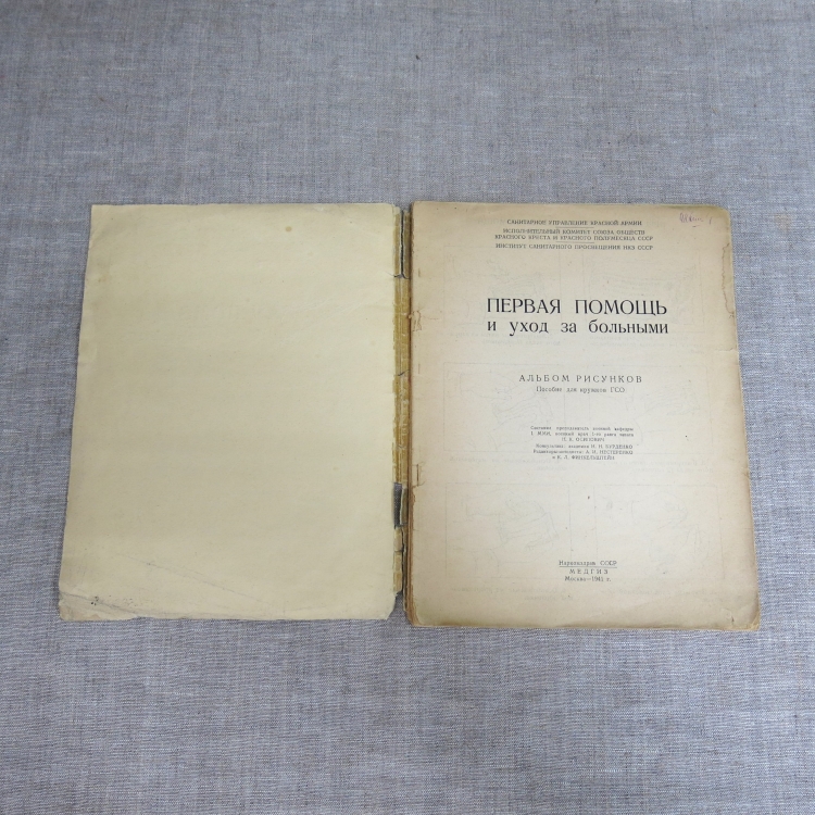 ПЕРВАЯ ПОМОЩЬ И УХОД ЗА БОЛЬНЫМИ. АЛЬБОМ РИСУНКОВ. Наркомздрав СССР, 1941