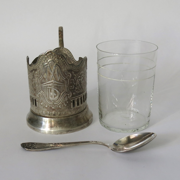 В набор входит подстаканник, стакан и чайная ложка.