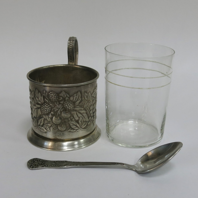 В набор входит подстаканник, стакан и чайная ложка.