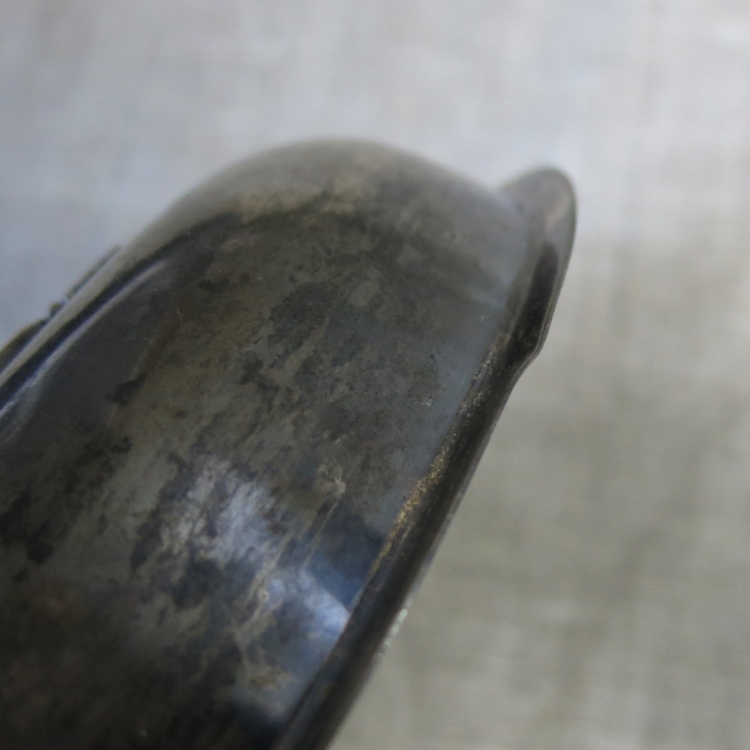 Кромка крышки с деформацией. Дефекты покрытия (царапины на внутренней поверхности крышки; потертости на нижней стороне блюда - см. на фото).
