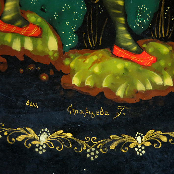 Папье-маше, лак, темпера, золото, живопись миниатюрная