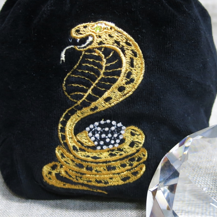 На бархатном мешке-футляре для кристалла - авторская вышивка, украшенная стразами.